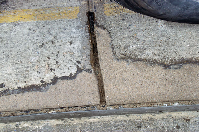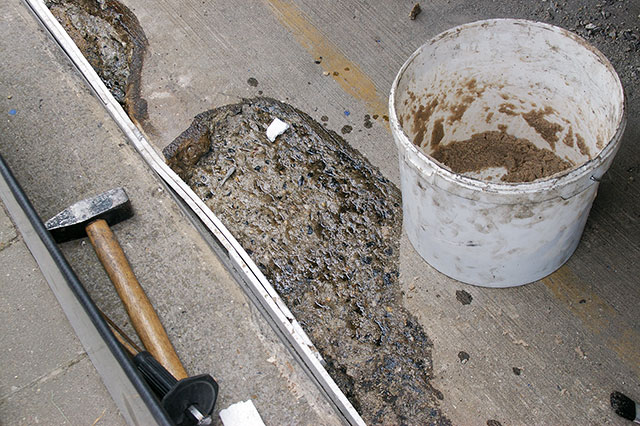 Anschließend wird der Riss in einer Breite von ca. 10 cm (5 m beiderseits des Risses) mit einem lösungsmittelfreien, durch Einarbeiten von Stellmittel standfest eingestellten Epoxidharz verdämmt.