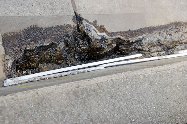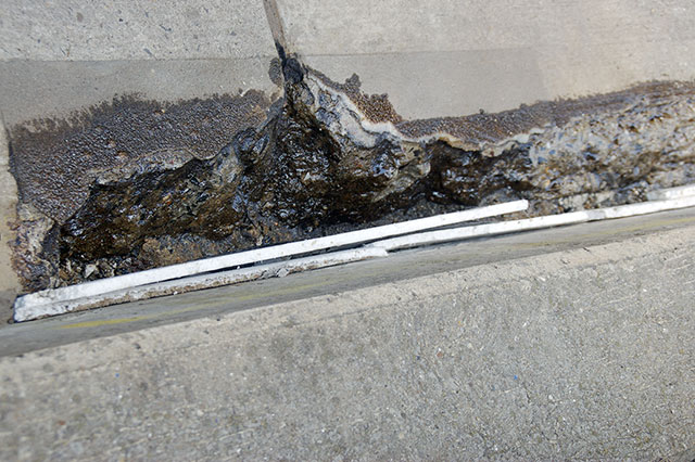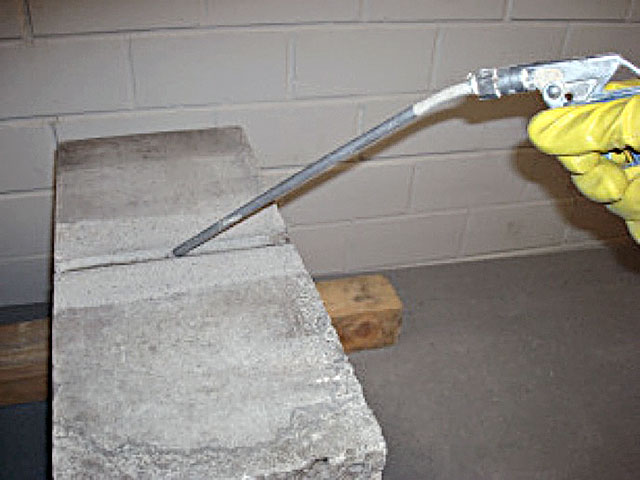 Die Reinigung der Fuge erfolgt mittels Hochleistungs-Industrie-Staubsauger. Anschließend wird der Riss mit zweikomponentigem niedrigviskosem Epoxidharz bis zur Sättigung getränkt.