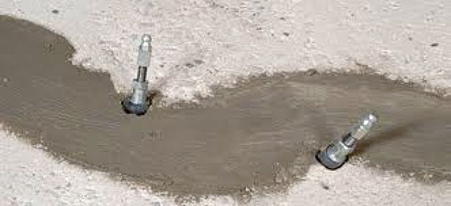 Bei der Sanierung von Rissbildungen in Betonflächen unterscheiden wir zwischen zwei Verfahren, der Rissverpressung (2a) und der Risstränkung (2b).